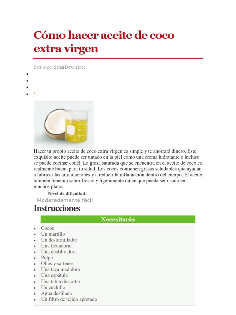 Como Hacer Aceite De Coco Extra Virgen Aceite De Coco Leche De