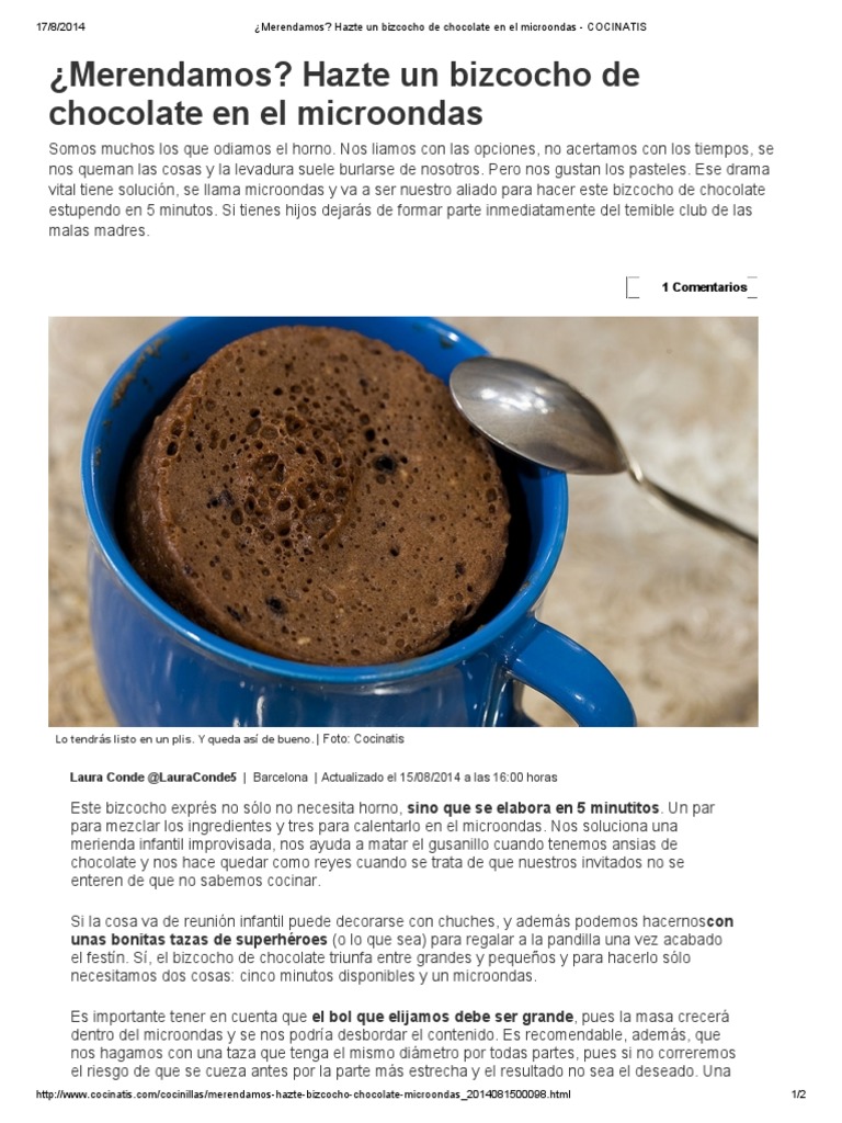 Bizcocho En El Microondas A La Taza Receta Pastel En Taza