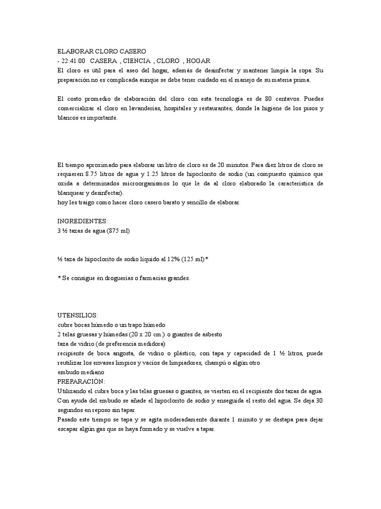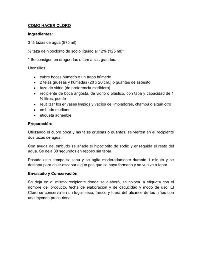 Lavado De Material Como Hacer Hipoclorito De Sodio En Casa