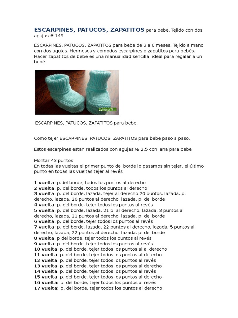 Escarpines Patucos Zapatitos Para Bebe Tejido Con Dos Agujas 149