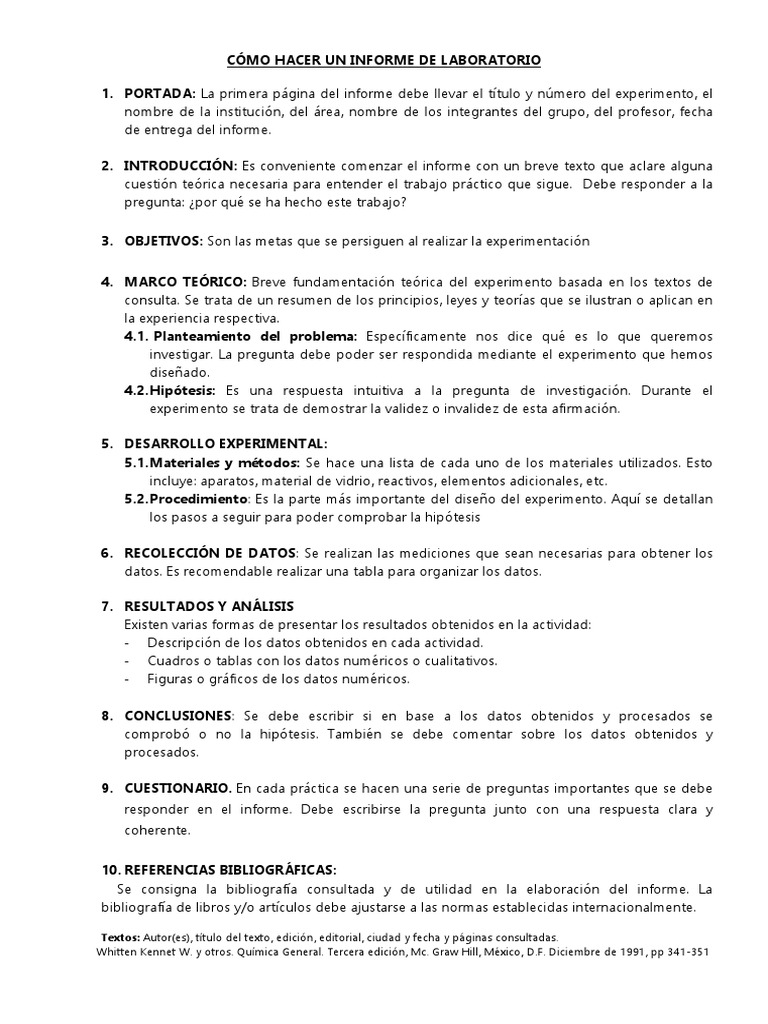 Pdf Esquema Para Realizar Los Informes De Laboratorio Sergio