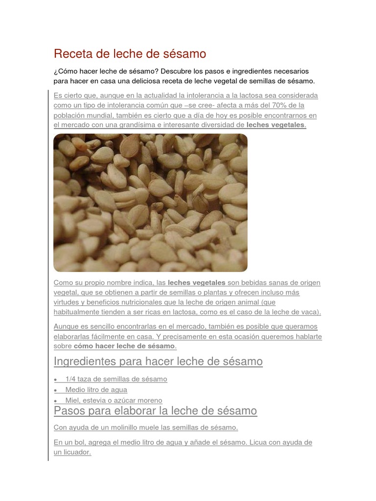 Leche De Sesamo Beneficios Y Propiedades De La Bebida De Sesamo