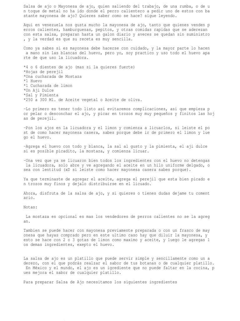 Como Hacer Mayonesa De Ajo Sin Huevo