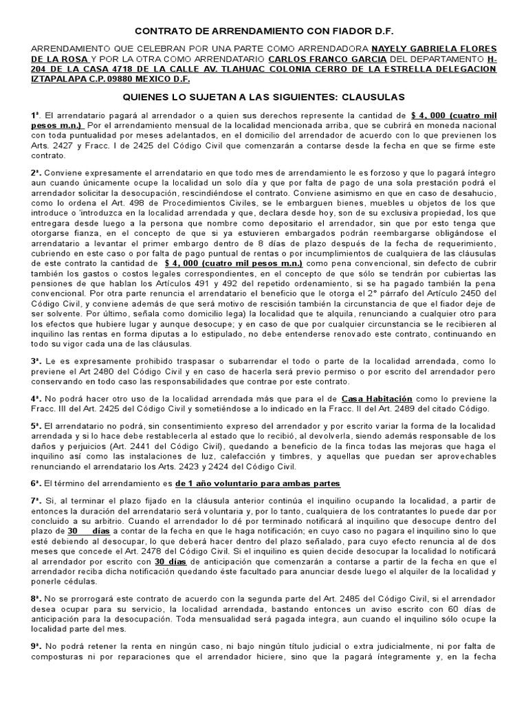 Contrato De Arrendamiento Con Fiador Ok Alquiler Pagos