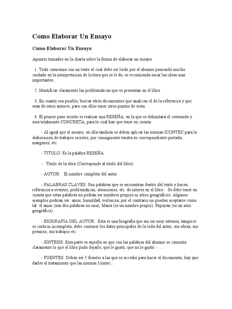 Como Hacer Un Ensayo De Un Libro Ensayos Autor