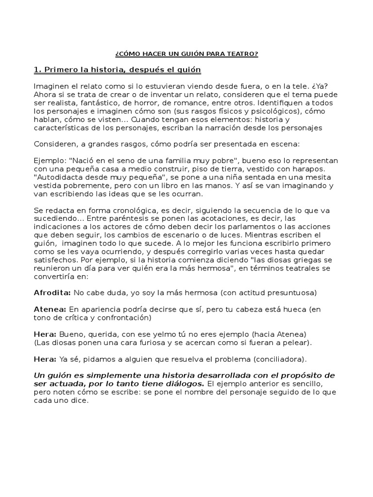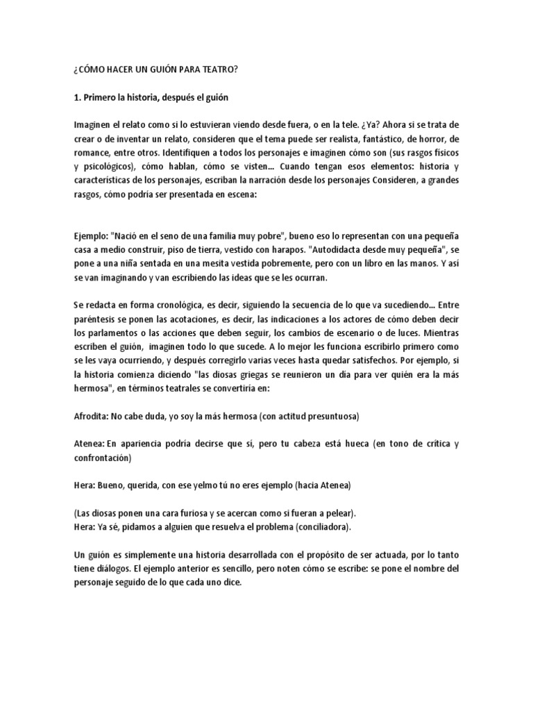 Como Elaborar Un Guion Teatral Teatro Entretenimiento General