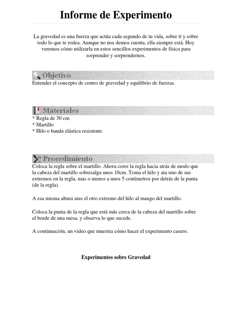Ejemplo De Un Informe De Un Experimento Cientifico Ejemplo Sencillo