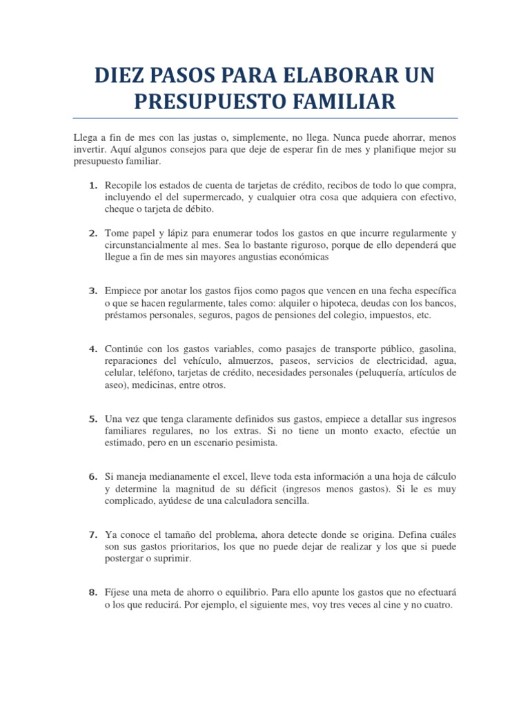 Si bien puedes usar un lapiz y un papel sera mucho mas facil usar una hoja de calculo o un programa de contabilidad sencillo en caso de ser posible. La cantidad de dinero calculado para hacer frente a los gastos generales de la vida cotidiana de un viaje. Ahora que sabes como esta integrado un presupuesto familiar es momento de que te expliquemos como elaborar uno paso por paso. Todo en una hoja de papel ordinario.
