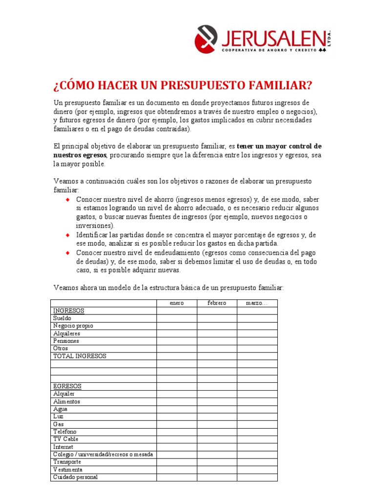 Como Hacer Un Presupuesto Familiar