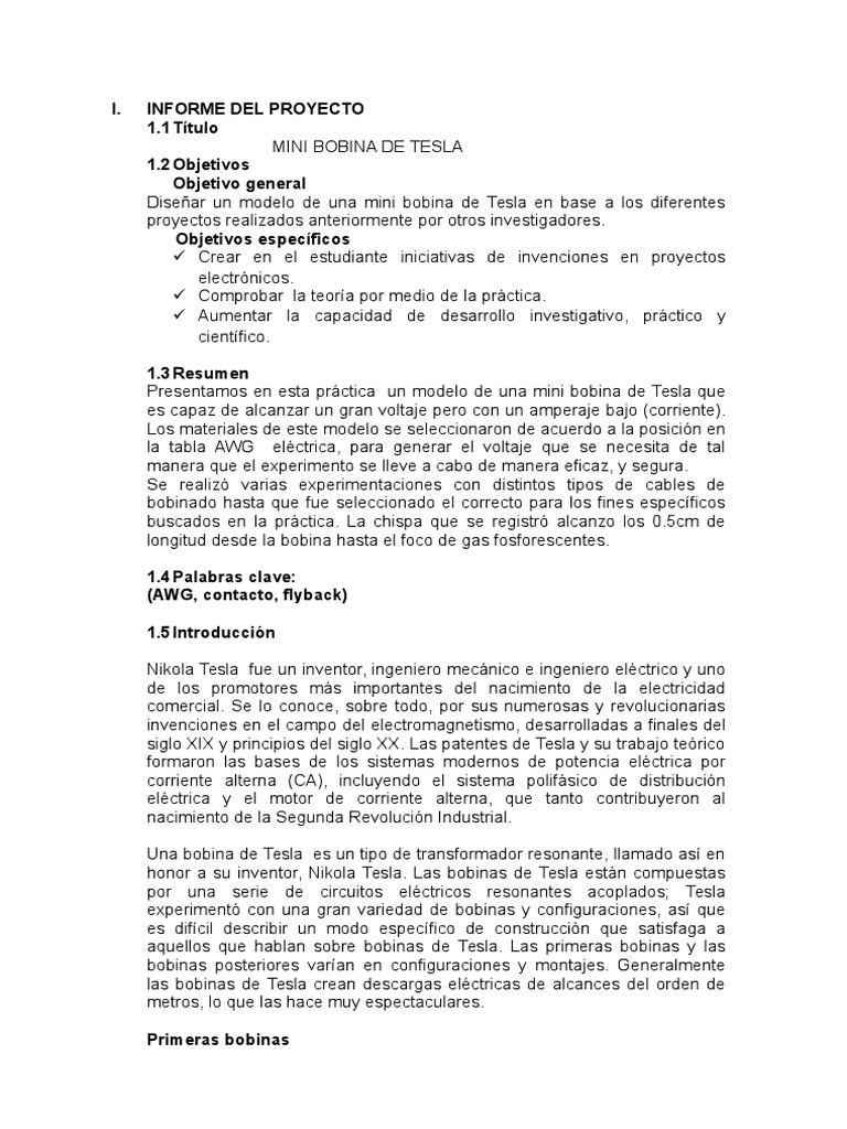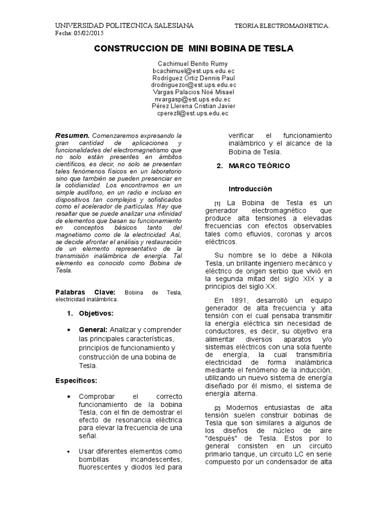 Informe Bobina De Tesla Electromagnetismo Electricidad