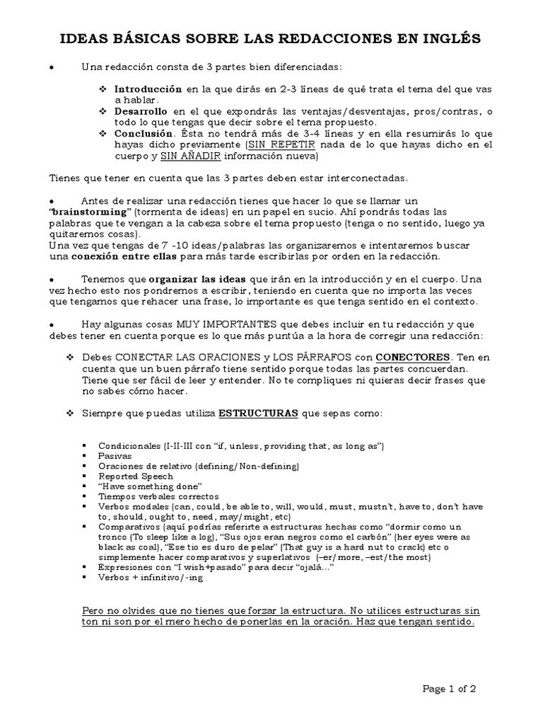 Como Hacer Una Redaccion En Ingles Ejemplos Coleccion De Ejemplo